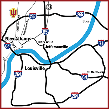 Cross the Sherman Minton Bridge and drive north to I-265 East. Take exit 121 to I-265. Follow I-265 to the second exit (Exit 3), which is Grant Line Road. Turn left (north); drive one quarter mile to the IU Southeast main entrance.